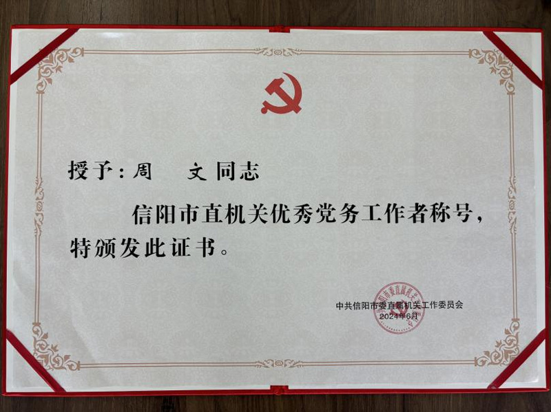2024年6月28日,中共信陽市委直屬機關(guān)工作委員會印發(fā)《關(guān)于表彰市直機關(guān)優(yōu)秀共產(chǎn)黨員、優(yōu)秀黨務(wù)工作者和先進基層黨組織的決定》(信直文﹝2024﹞17號)。華信建投集團共有1名同志榮獲“市直機關(guān)優(yōu)秀共產(chǎn)黨員”稱號,1名同志榮獲“市直機關(guān)優(yōu)秀黨務(wù)工作者”稱號,2個基層黨組織榮獲“市直機關(guān)先進基層黨組織”稱號。